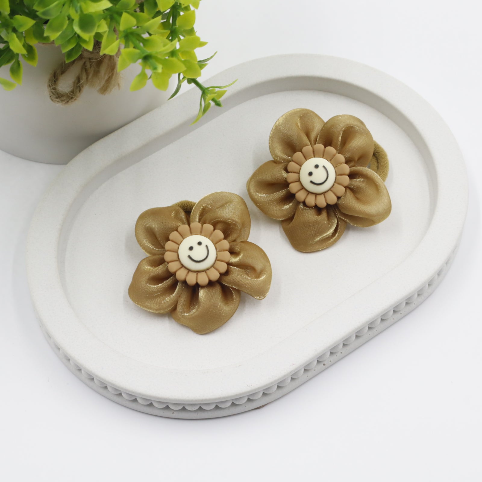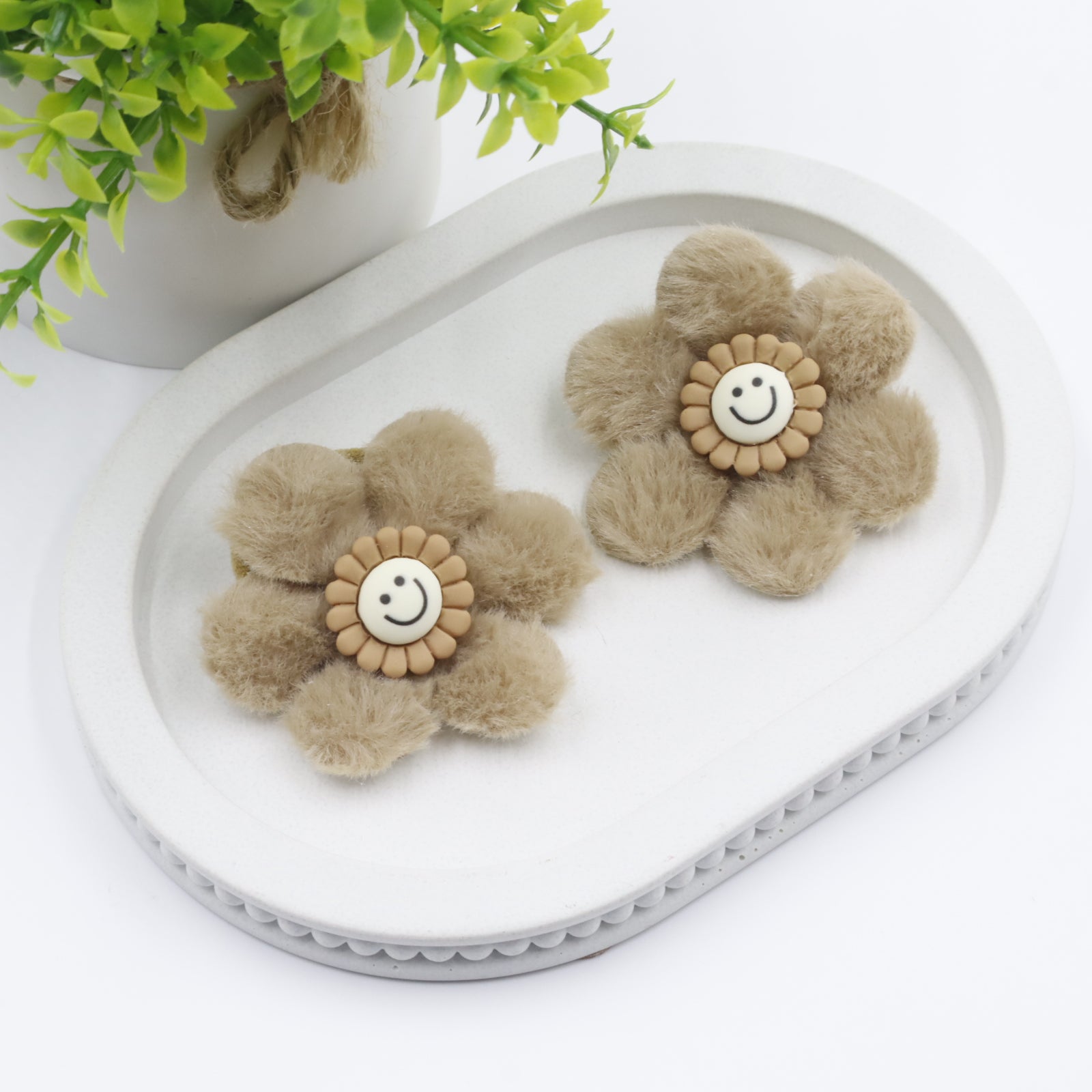 Hair Cuddles Fur & Fabric Flower Rubber Bands Hair Accessories Combo Set for Girls- Pair of 4