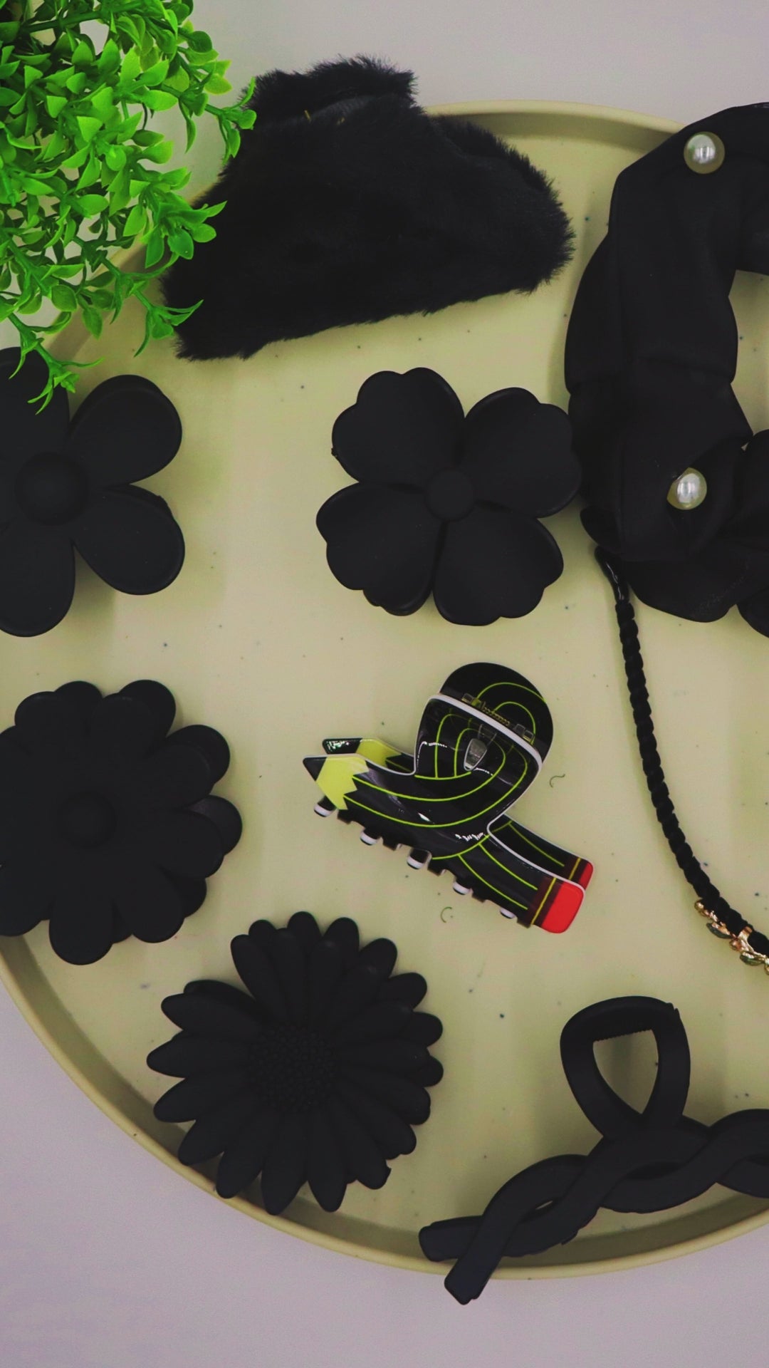 This 10-piece luxury set features premium matte floral clips, a satin pearl scrunchie, fur accent clip, golden heart claw, and a designer embellished headband, crafted to elevate every look — from festive wear to daily chic.🖤🖤
