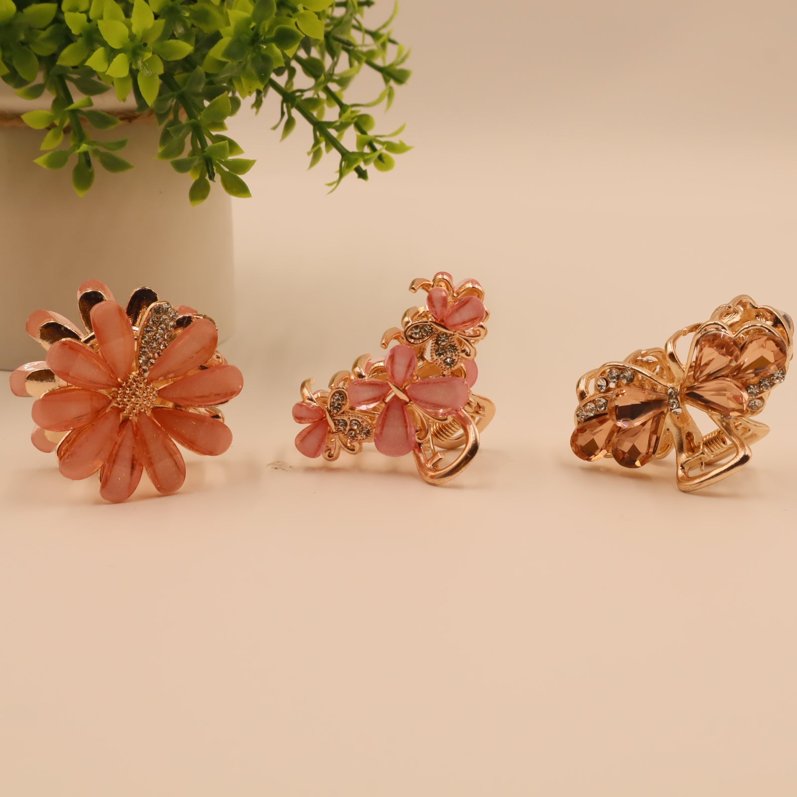 ⭐ Stylish Combo Set – Includes 3 elegant stone-studded hair claws in versatile designs, perfect for elevating any hairstyle.
